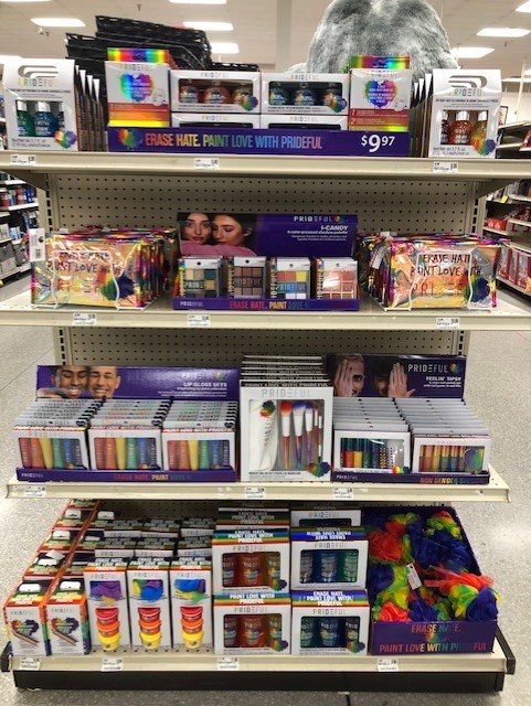 I was shopping at the grocery store, and I came upon this end-cap display. I did a double take. Look closely. Can you guess what it is? It’s gay pride products!!! It’s sure to attract the interest of children because it’s so inviting and colorful. This is not innocent. An evil spirit is probably attached to these items. Do not buy or bring these products into your home, or let your children use them. What is this world coming to?